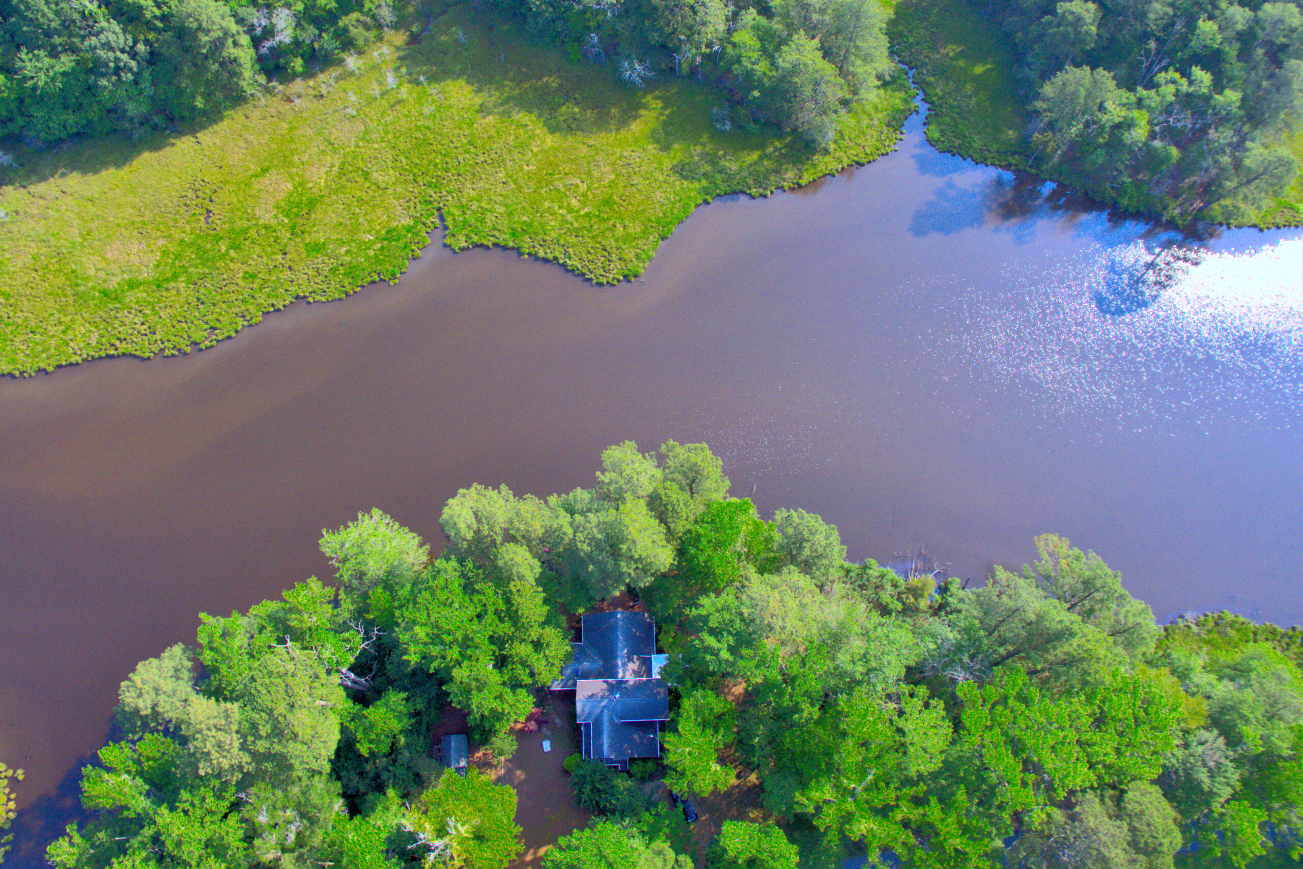 When we say secluded waterfront, we mean it! Casa Blue Heron is on about 1.2 acres, surrounded by farmland and Massey Branch Creek which connects to Chincoteague Bay.